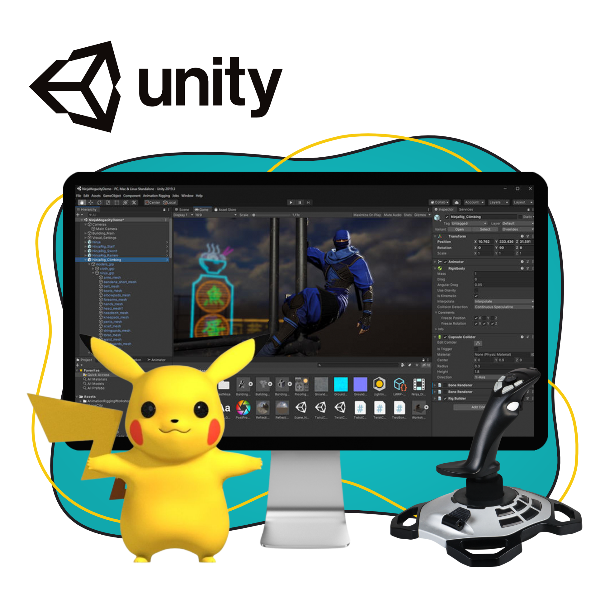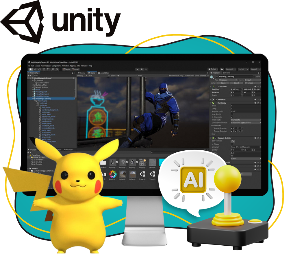 Модуль по обучению созданию игр с нуля на Unity 2D включает в себя: